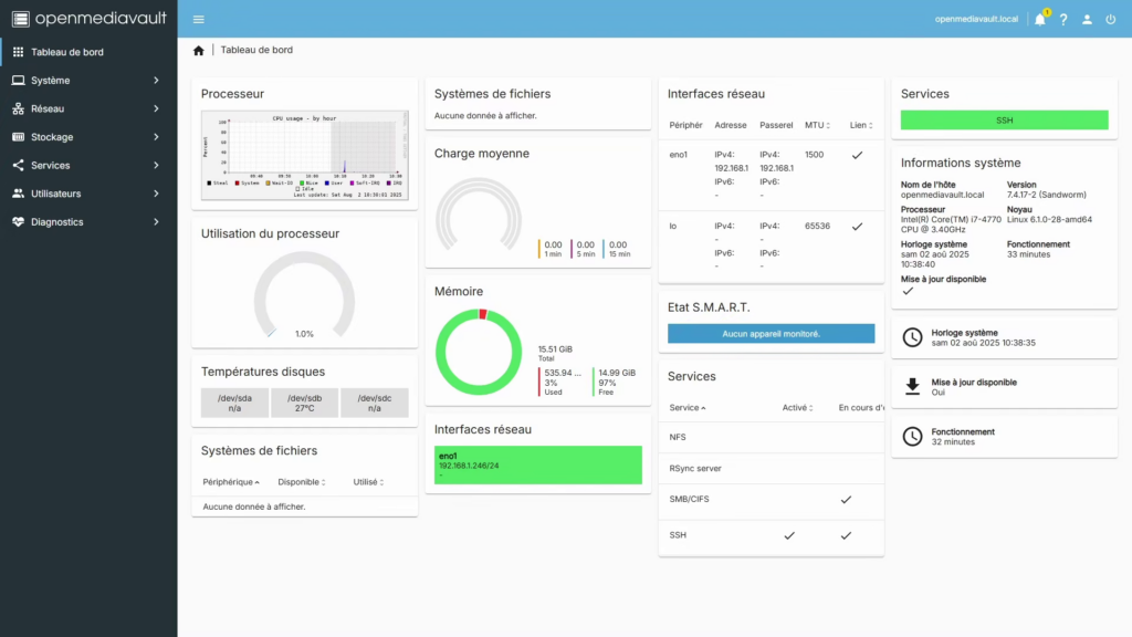 👉 Redémarrez ensuite OpenMediaVault, après une mise à jour complète.