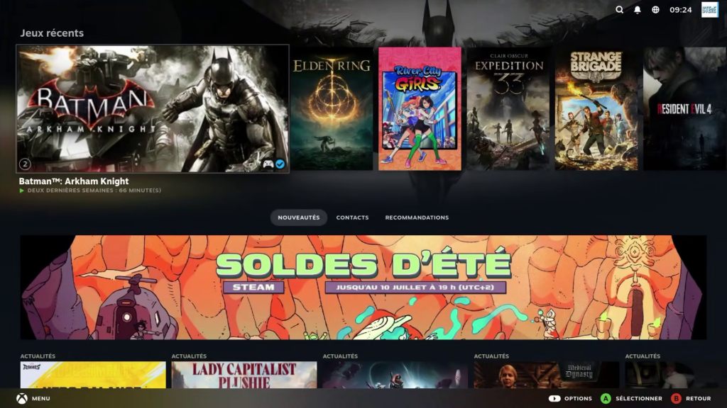 - Vous arrivez très rapidement sur l’interface type Steam Deck / Big Picture de Steam.