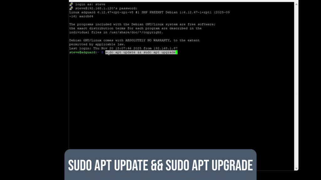 Avant d’installer AdGuard Home, mettez Raspberry Pi OS à jour :